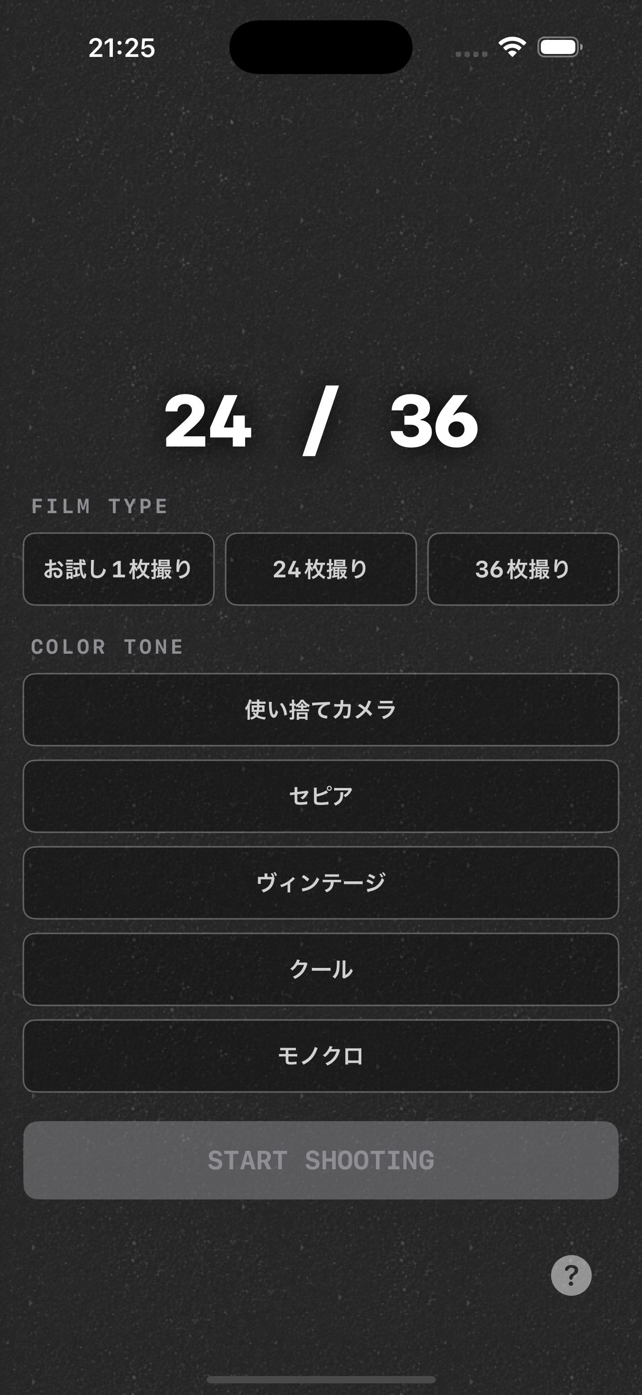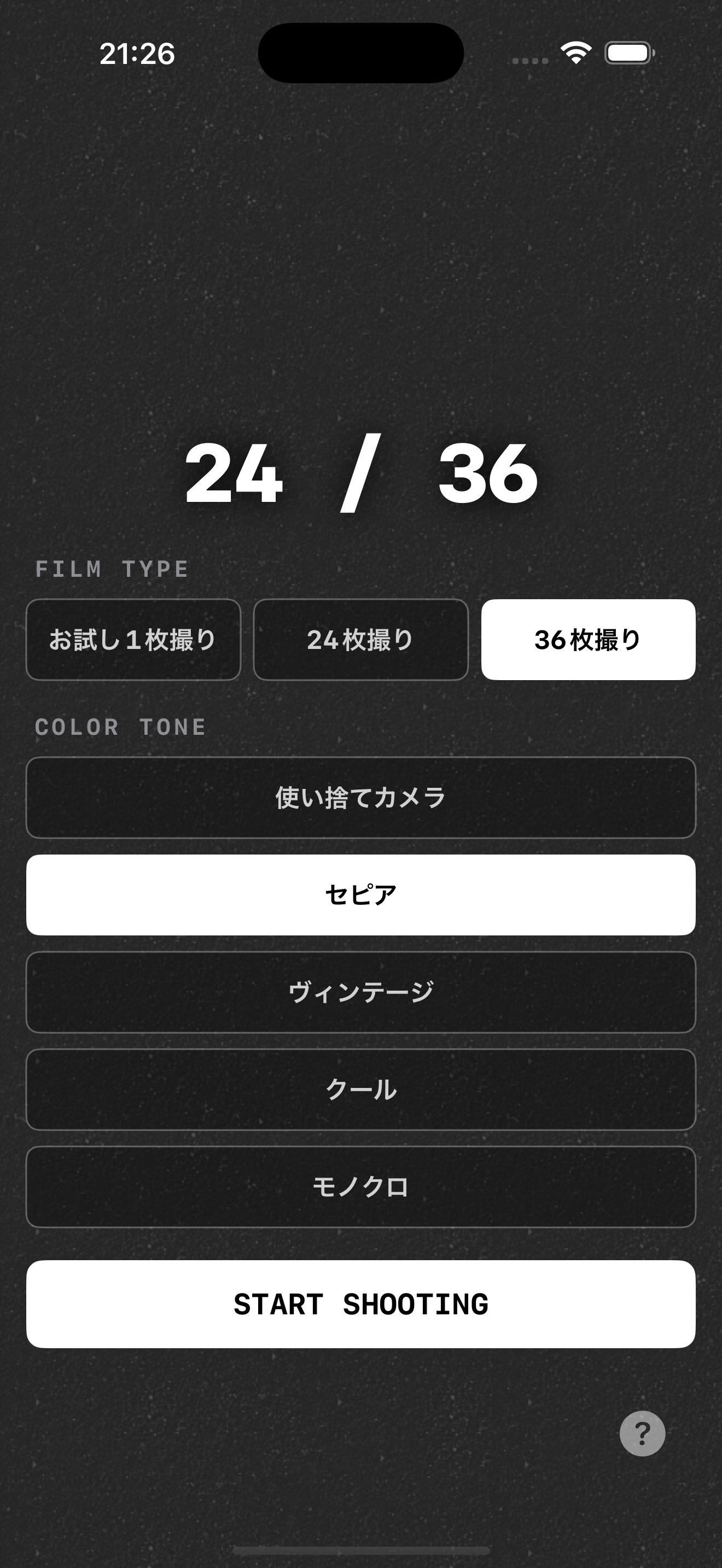 それは,「24/36」が単なる「フィルム風”加工”アプリ」ではなく,フィルムカメラが持つ本来の「撮影”体験”」そのものを大切にしているからです.
