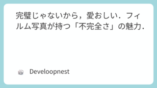 かつてフィルムカメラが主流だった時代,写真を撮るという行為には,必ず「待つ」というプロセスが伴いました.フィルムを撮り終え,写真屋さんに預けてから数日間.「うまく撮れているだろうか」,「あの時の笑顔は写っているかな」と,想像を巡らせる時間.