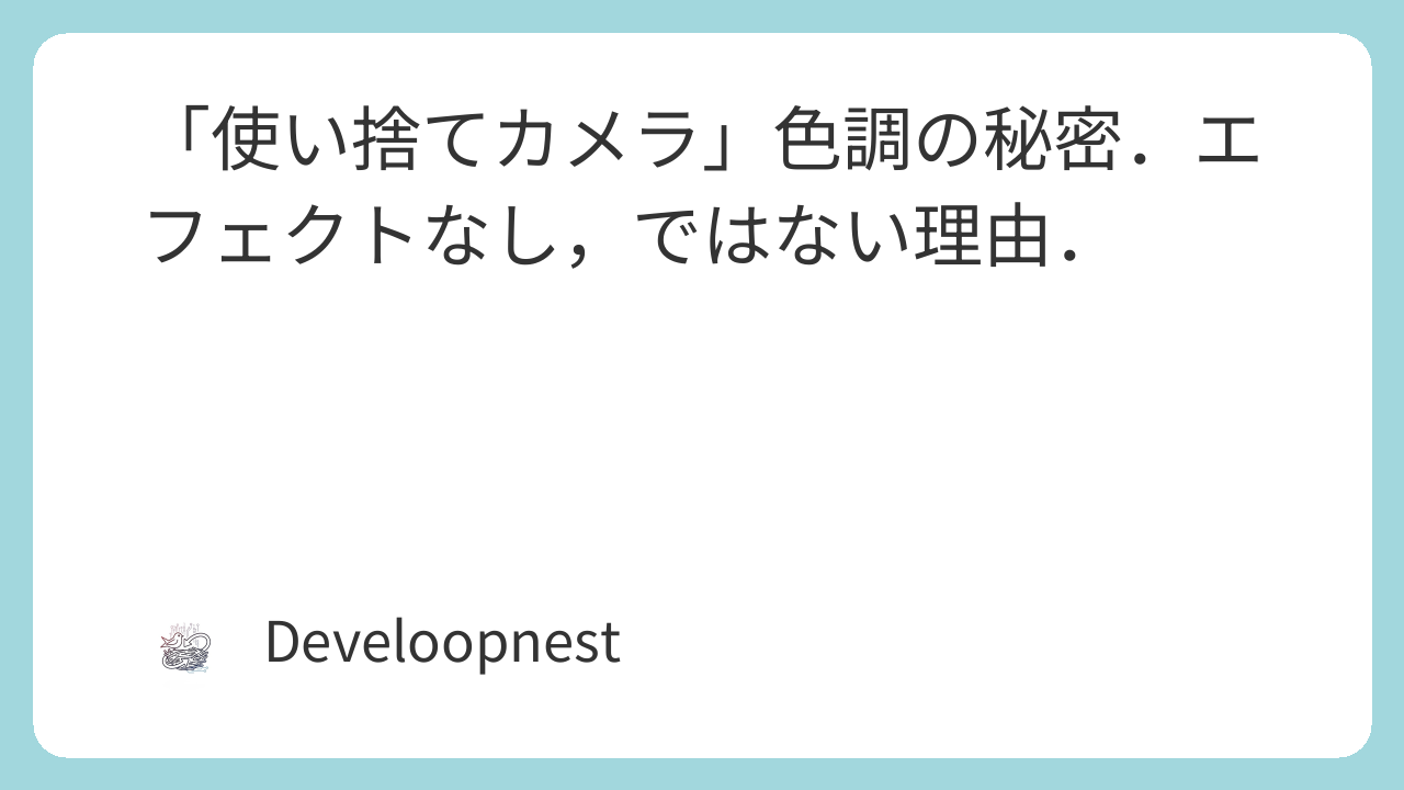 この色調は,単にスマートフォンで撮影したままの画像を表示しているのではありません.私が目指したのは,1990年代から2000年代にかけて,誰もが一度は手にしたであろう,あのプラスチック製のレンズ付きフィルム,いわゆる「写ルンです」に代表される使い捨てカメラの質感です.