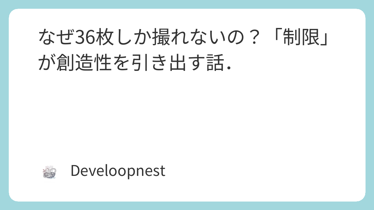 枚数制限は,私たちから自由を奪うものではありません.むしろ,無限の可能性の中から「撮るべき一枚」を見つけ出すための,集中力を高めるスイッチなのです.